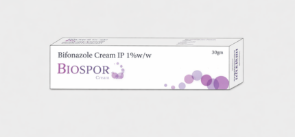 Anti-fungal Medications 30g Bifonazole Cream Bifonazole has dual mode of action. It inhibits fungal ergosterol biosynthesis at two points, together with inhibition of HMG-CoA. This enables fungicidal properties against dermatophytes and distinguishes bifonazole from other antifungal drugs. Product Overview CompositionBifonazole 1% w/wType Of Skin OintmentBiological ProductsPackaging Size30gIndicationsAnti-Fungal MedicationsUsesSkin ProblemsCategoriesAllopathic Enquire Now